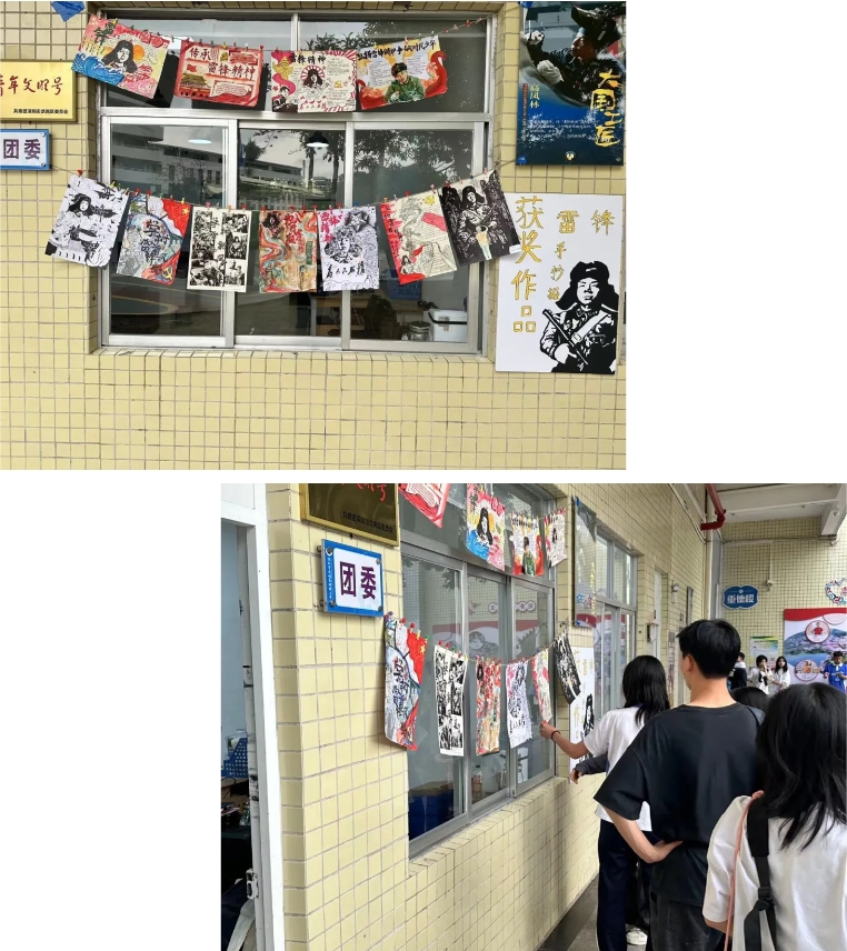 在海报评比活动中,同学们以"雷锋精神伴我前行"为主题,充分发挥想象力和创造力,创作出了一幅幅精美绝伦的海报作品。这些作品不仅展现了同学们对雷锋精神的深刻理解,也体现了他们的艺术才华和创新能力。其中院级提交作品200余幅,入围校级作品86幅。经过评选,最终评选出了一等奖1幅,二等奖2幅,三等奖3幅,优胜奖4幅。在第五周升旗仪式上校领导为获奖选手颁奖,并在文化长廊为获奖作品进行展示,优秀作品吸引了不少学子驻足观看,为校园文化建设增添了浓墨重彩的一笔。